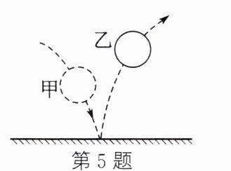 5. (2025·南京建邺校级段考)如图,某同学将重力为5N的篮球掷向地面,经过甲位置后碰到地面,接着向上反弹经过乙位置,忽略空气的作用。请在图中乙位置画出篮球的受力示意图。