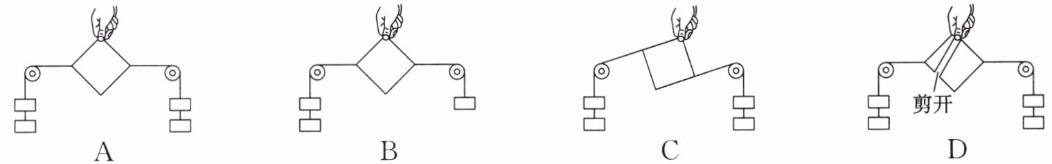 1. (2024·盐城)下列情形中,松手后纸片还能保持平衡的是 (