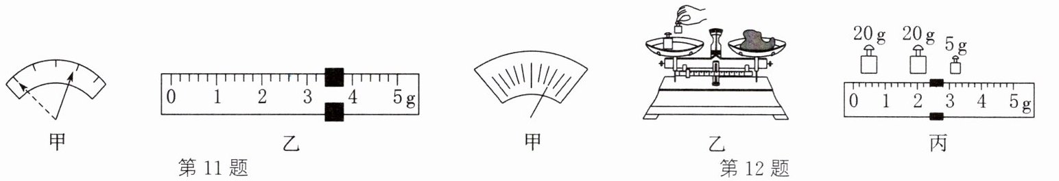 11. (2024·西安莲湖校级段考)在“用托盘天平测量物体质量”实验中,应先将天平放在水平桌面上,然后将