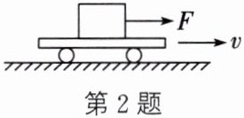 2. 如图所示,木块置于小车上,在水平拉力 $ F $ 的作用下,小车和木块一起以速度 $ v $ 沿水平地面向右做匀速直线运动(不计空气阻力)。以下三对力属于平衡力的是(