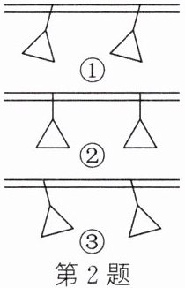 2. (2025·南通通州模拟)如图所示是小明乘车时看到公交车从某一站点向右直线行驶,经历启动、匀速行驶、减速进站到静止在另一站点的过程中,车上拉手所处的不同状态。在这一过程中,他看到的先后顺序是(