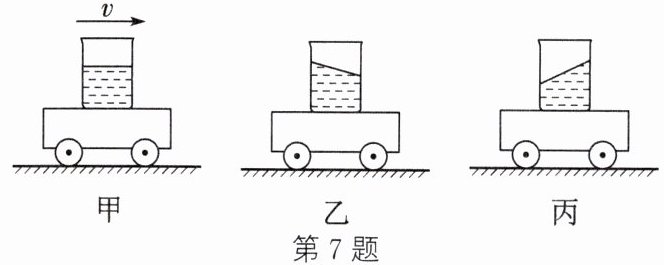 7. 如图甲所示,盛有水的烧杯随小车一起水平向右做