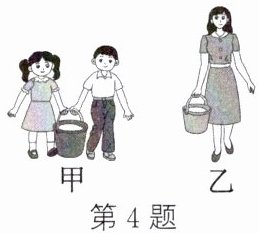 4. 如图所示的情景中,图甲中提起水桶的力有