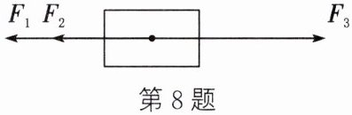 8. (2025·无锡宜兴期中)如图所示,一个物体受到同一直线上的三个力作用,三个力的大小分别为$F_{1}=7N$、$F_{2}=4N$、$F_{3}=9N$。这三个力的合力大小和方向分别是(