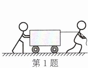 1. (2024·宁德期末)假期社区服务劳动中,小明用300N的力水平向前拉车,小芳用200N的力水平向前推车,如图所示。这两个力的合力大小是(