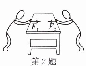 2. (2024·临沂平邑期末)如图所示,两个人沿水平方向推一张桌子,$F_{1}$的大小为120N,水平向右;$F_{2}$的大小为100N,水平向左,则下列力中与这两个力的作用效果相同的是(