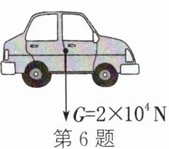 6. (2024·南京建邺校级模拟)为测试国产品牌新能源汽车高速行驶性能,在测试场地以 $ 120 \mathrm{ km/h} $ 的速度使其做匀速直线运动,请在图中画出此时该车受力的示意图。(重力已画出,车和驾驶员的总重为 $ 2 × 10^{4} \mathrm{ N} $,空气阻力不计)