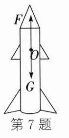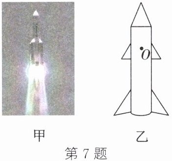 7. (新情境·科技民生)(2024·泰州二模)如图甲所示是 2024 年 5 月 3 日搭载嫦娥六号探测器的长征五号遥八运载火箭在大气层外加速升空的场景;图乙是其示意图, $ O $ 点表示重心,请在图乙中作出火箭此时的受力示意图。