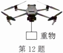 12. (2025·盐城盐都期中)如图所示,四旋翼无人机下方用细线悬挂一个重物,通过四个螺旋桨的高速转动改变运动状态。不考虑空气阻力,则无人机在空中(