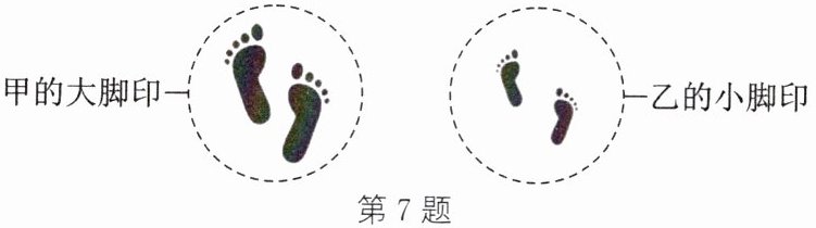 7. (2025·盐城东台期中)如图,甲、乙两人站在完全相同的水平沙滩上,沙滩上留下深浅相同、大小不同的脚印,则(
