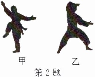 2. 一位太极拳爱好者在打拳过程中出现甲、乙所示的两种站姿,在保持这两种姿态静止时,他对地面的压力和压强分别为 $ F_{甲} $ 和 $ F_{乙} $、$ p_{甲} $ 和 $ p_{乙} $,则下列关系正确的是(