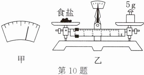 。答案:10.(1)游码 平衡螺母 左 (2)取下5g砝码,向右移动游码 (3)① 向右盘添加砝码 在左盘中取出部分食盐