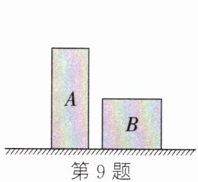 9. 如图所示,实心长方体$A$和$B$放在水平地面上,高度之比$h_{A}:h_{B}=2:1$,底面积之比$S_{A}:S_{B}=1:2$,若它们对地面的压强相等,则它们的密度之比$ρ_{A}:ρ_{B}=$