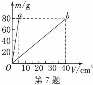 由图像,$ρ_a=\frac{m_a}{V_a}=\frac{80g}{10cm^3}=8g/cm^3$