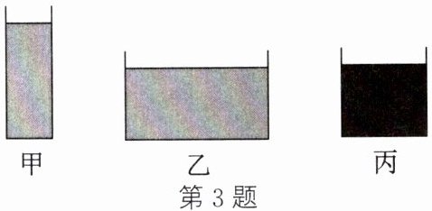 3. 如图所示,甲、乙两容器中装的都是水,丙容器中装的是酒精,液面与乙中液面相等高。已知酒精的密度是$0.8×10^{3}kg/m^{3}$,则(