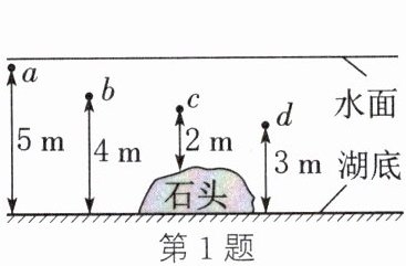 1. 如图所示,平静的湖中,下列位置中,水的压强最小的是(