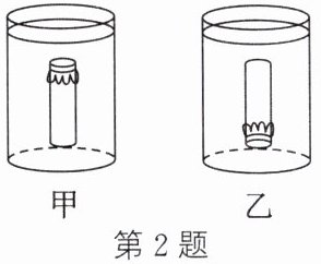 2. 一个空的塑料药瓶,瓶口扎上橡皮膜,竖直地浸入水中,一次瓶口朝上,一次瓶口朝下,这两次药瓶在水里的位置相同,如图所示。下列关于橡皮膜的说法正确的是(