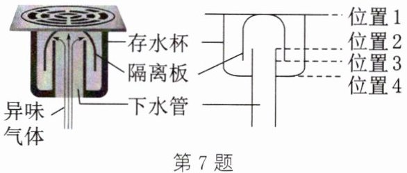 7. (2024·武汉洪山期末)如图是一种嵌于厨房或卫生间地面的地漏及其结构示意图。下列有关说法中错误的是 (