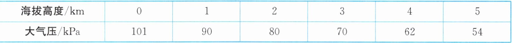 (1) 从表格中的数据可以得出,大气压强随海拔高度的增加而