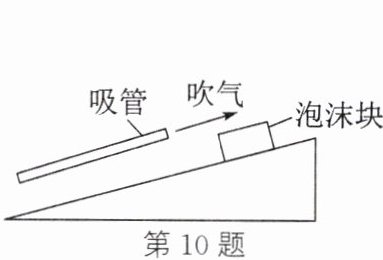 10. (2025·扬州邗江一模)如图所示,泡沫块正在沿粗糙斜面缓慢下滑,现用吸管沿泡沫块上表面吹气。不计空气阻力,则吹气过程中泡沫块可能(
