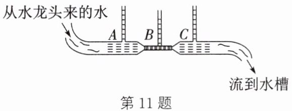 。图中打开水龙头,使自来水流过图中所示管道,在A、B、C三处,水的压强最小的是B