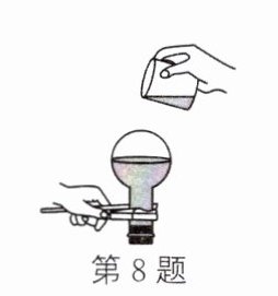 8. 将盛水的烧瓶加热,水沸腾后将烧瓶从火焰上拿开,迅速塞上瓶塞,再把烧瓶倒置后向瓶底浇上冷水,如图所示。关于烧瓶内的水,下列分析正确的是(
