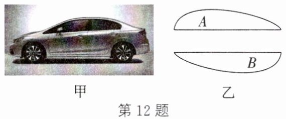 12. (跨学科实践·工程实践)(2024·西安雁塔校级模拟)观察如图甲中汽车的外形可知,若汽车在水平路面上急速行驶,由于汽车上、下表面空气的流动速度不同,汽车对地面的压力会