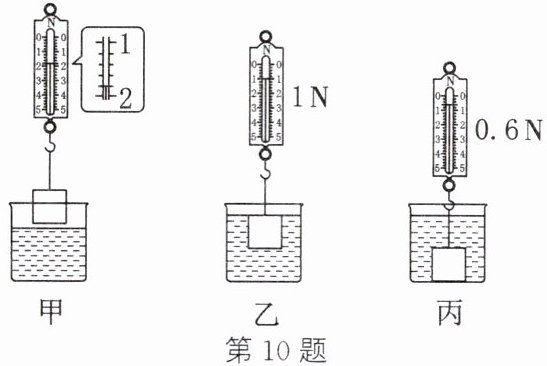 (3)继续增大物块所处的深度,当它与容器底部接触后,弹簧测力计示数如图丙所示,此时物块受到的浮力为