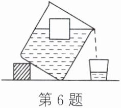 答案:6.(1)木块受到的浮力$F_{浮}=G_{排}=m_{排}g = 32×10^{-3}\mathrm{ kg}×10\mathrm{ N/kg}=0.32\mathrm{ N}$ (2)由$F_{浮}=\rho_{液}gV_{排}$可得,木块排开酒精的体积$V_{排}=\frac{F_{浮}}{\rho_{酒精}g}=\frac{0.32\mathrm{ N}}{0.8×10^{3}\mathrm{ kg/m}^3×10\mathrm{ N/kg}} = 4×10^{-5}\mathrm{ m}^3 = 40\mathrm{ cm}^3$ (3)因为木块漂浮,所以$G_{木}=F_{浮}=G_{排}$,即$m_{木}g = m_{排}g$,则$m_{木}=m_{排}=32\mathrm{ g}$;木块的体积$V_{木}=a^{3}=(4\mathrm{ cm})^{3}=64\mathrm{ cm}^3$,木块的密度$\rho_{木}=\frac{m_{木}}{V_{木}}=\frac{32\mathrm{ g}}{64\mathrm{ cm}^3}=0.5\mathrm{ g/cm}^3$