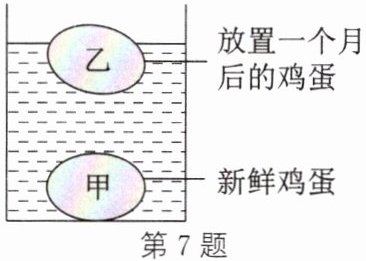 7. (2025·镇江京口校级模拟)将新鲜度不同的甲、乙两鸡蛋放入水中,静止时甲沉底,如图所示,下列说法正确的是(