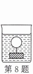 8. 一个气球下挂一个铁块置于水中某一位置,处于静止状态(如图所示)。现用手轻轻向下推一下气球,那么手离开气球后,气球和铁块的运动情况是(
