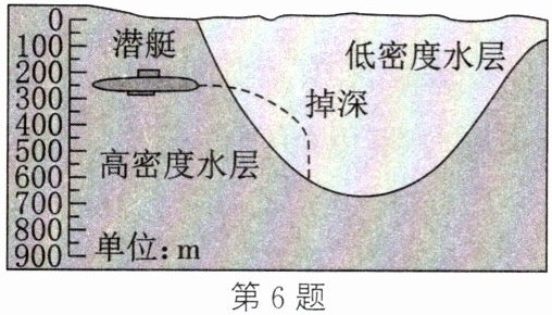 6. (2025·南京秦淮一模)如图所示,潜艇在海水下从高密度水层驶入低密度水层时,急速掉落的现象称为“掉深”。下列说法错误的是(