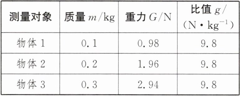 2. 如表是小华在探究“重力与物体质量关系”实验中得到的实验数据。