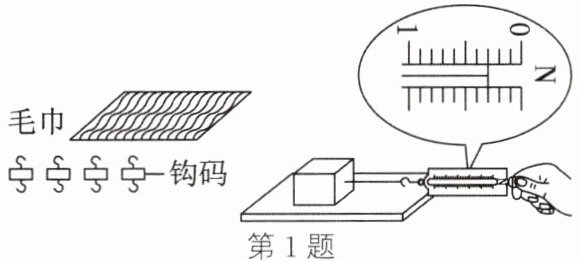 N;再将毛巾平铺在木板上进行实验,可探究滑动摩擦力大小与接触面粗糙程度