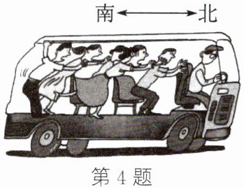 4. 如图,当公交车的运动状态突然发生改变时,乘客都向北倾,产生此现象的原因可能是(