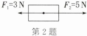 两力方向相反,合力大小为$F = F_{2}-F_{1}=5\,\mathrm{N}-3\,\mathrm{N}=2\,\mathrm{N}$,方向与较大力$F_{2}$方向一致,即水平向右。