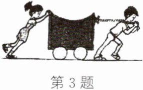 3. 如图所示,两个人分别用$F_{1}=100N$和$F_{2}=80N$的力推车和拉车,并且两力在同一水平直线上,则车受到推力和拉力的合力是(