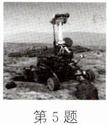 答案:5.(1)火星车在火星上受到的重力$G = mg = 240 \mathrm{kg} × 3.7 \mathrm{N/kg} = 888 \mathrm{N}$ (2)火星车停在平坦的火星表面上时,对火星表面的压力等于自身的重力,即$F = G = 888 \mathrm{N}$;其对火星表面的压强$p = \frac{F}{S} = \frac{888 \mathrm{N}}{6 × 0.1 \mathrm{m}^{2}} = 1480 \mathrm{Pa}$