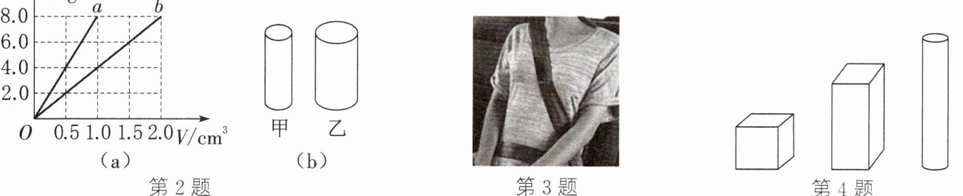 2. 如图(a)所示为$a$、$b$两种不同物质质量和体积的关系图像,则$a$、$b$两种物质的密度之比为