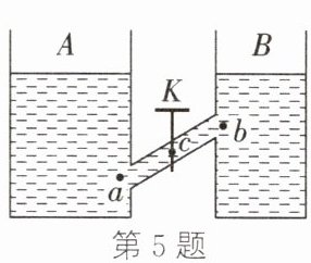 5. 如图所示,A、B两容器中装有同种液体,液面高度相同。K是连接A、B容器的阀门。下列说法中正确的是(