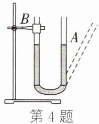 4. 如图,两端开口的U形管装有一定量的水,将A管向右倾斜,稳定后A管中的水面将(