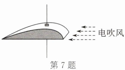 7. (2025·无锡江阴期中)如图所示,小华用卡纸自制了飞机机翼模型,当她用电吹风从侧面向它吹风时,机翼就会升起,这是因为机翼(