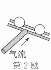 2. 如图所示,两根水平玻璃棒中间放上两个乒乓球,通过空心塑料管向两球间用力吹气,观察到的现象是