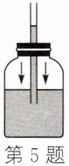 5. 一根有刻度的细玻璃管两端开口,通过橡皮塞插入装有红色溶液的密封玻璃瓶,制成一个简易气压计,如图所示。把气压计从山脚带到山顶(不考虑温度的变化),该过程中细玻璃管内的液柱高度会(