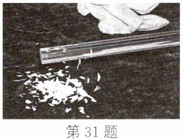 31. 如图所示,用丝绸摩擦过的有机玻璃棒靠近纸屑,你看到的现象是