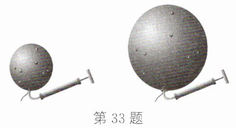 33. 如图所示,用表面粘有小颗粒的气球类比