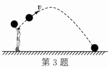 3. 某同学进行掷实心球的训练,球离手后的运动轨迹如图所示。若实心球在到达最高点时,所受的一切外力都突然消失,实心球将(