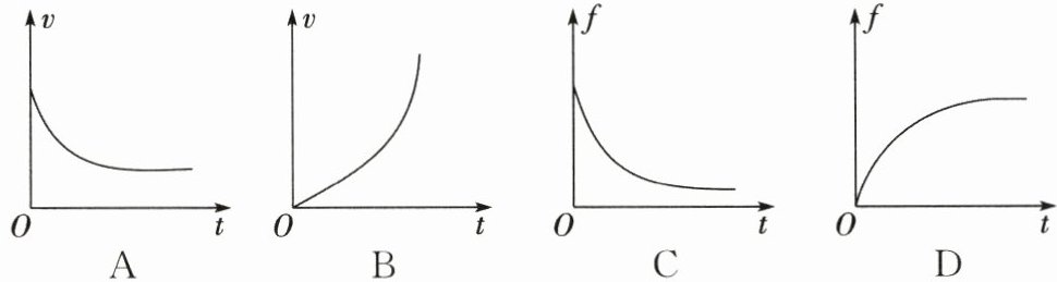 (4)下列能反映雨滴下落速度 $ v $、所受空气阻力 $ f $ 随时间 $ t $ 变化关系的图像是