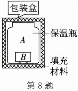 8. 为救治病人,急需将一种药品送到偏远的山村,这种药品要求在 0℃以下存放,常用的保温瓶不能满足需要。为保障药品存放的要求,某同学设计了如图所示的冷藏盒。下列做法正确的是(