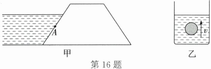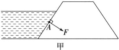 (1)拦河坝总是修成上窄下宽的形状,如图甲所示为一大坝的截面图,请画出$A$点处大坝受到水压力的示意图。